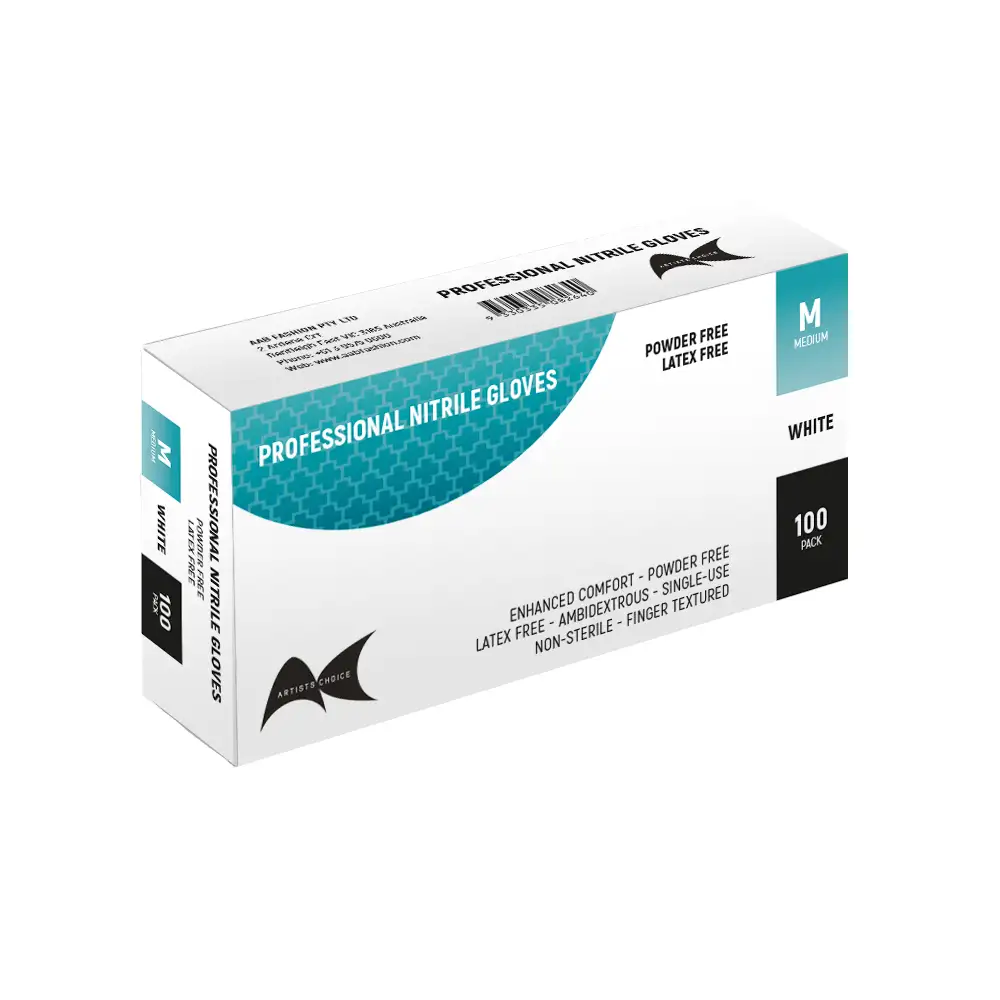 WHITE NITRILE GLOVES MEDIUM